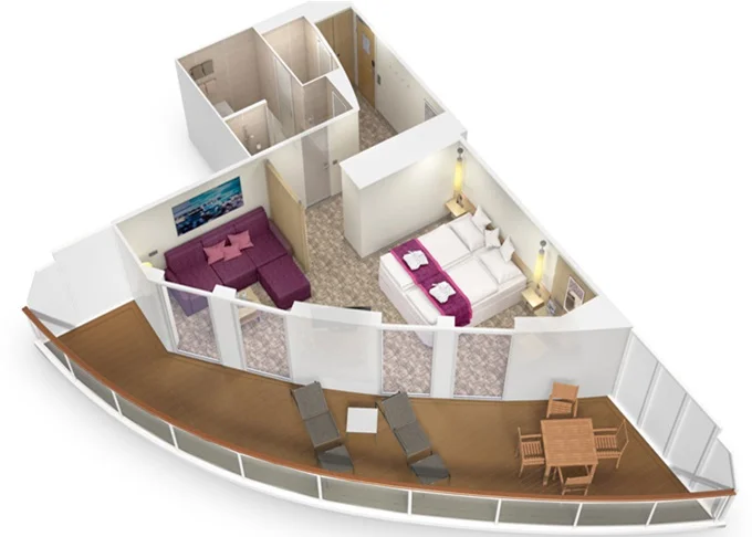 21 kategórií, vrátane family kajút, single kajút, Junior suites so zimnou záhradou a Premium a Penthouse suites o veľkosti až do 53m².